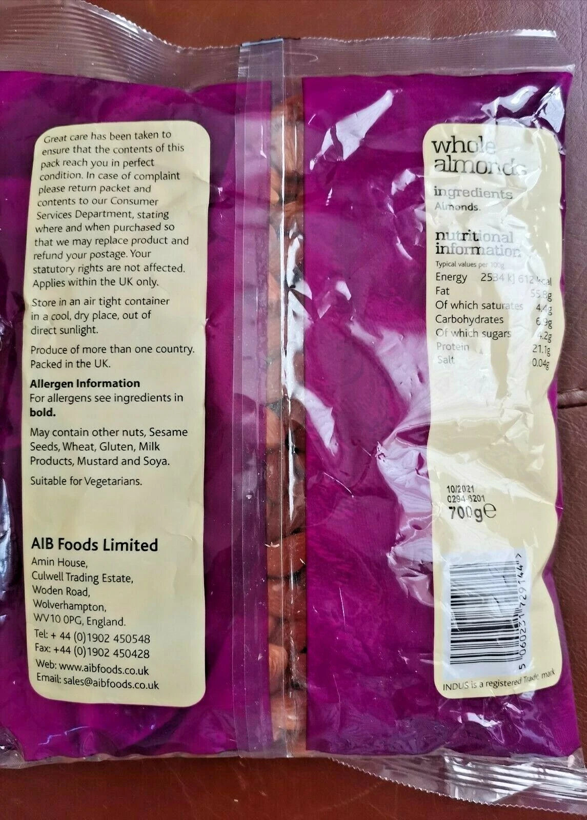 Indus Whole Almonds 700g, 1400g - High Protein Snack