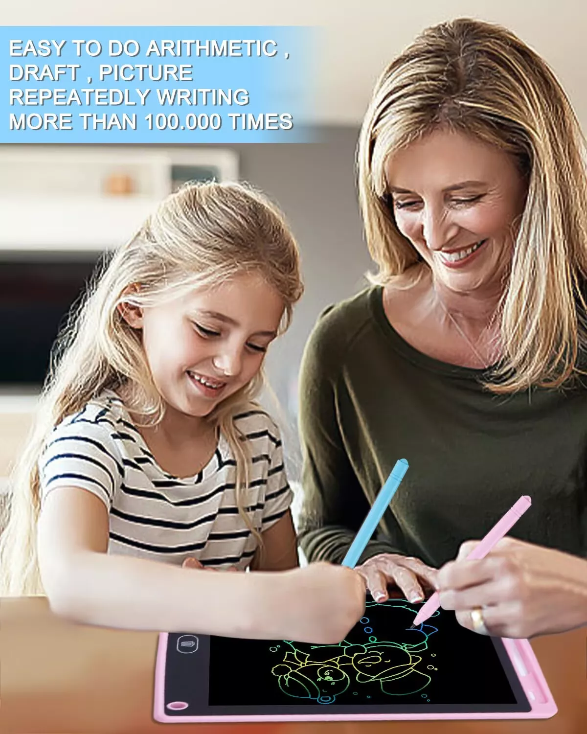 LCD Writing Tablet, 12 Inch Pink or Blue Drawing Board for Kids, Reusable Learning Pads Airplane Travel Toys for 3 4 5 6 Year Old Girls Toddlers, Educational Doodle Scribbler Gifts for Birthday