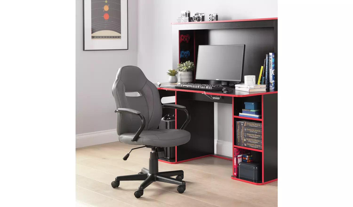 New - Argos Home Faux Leather Gaming Chair - Grey