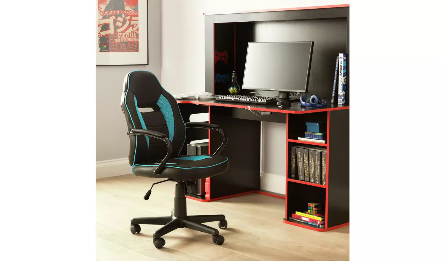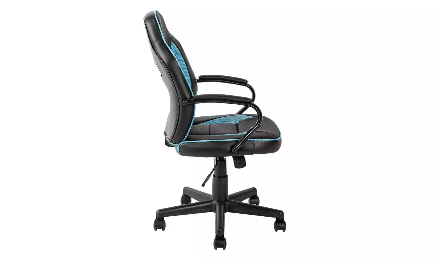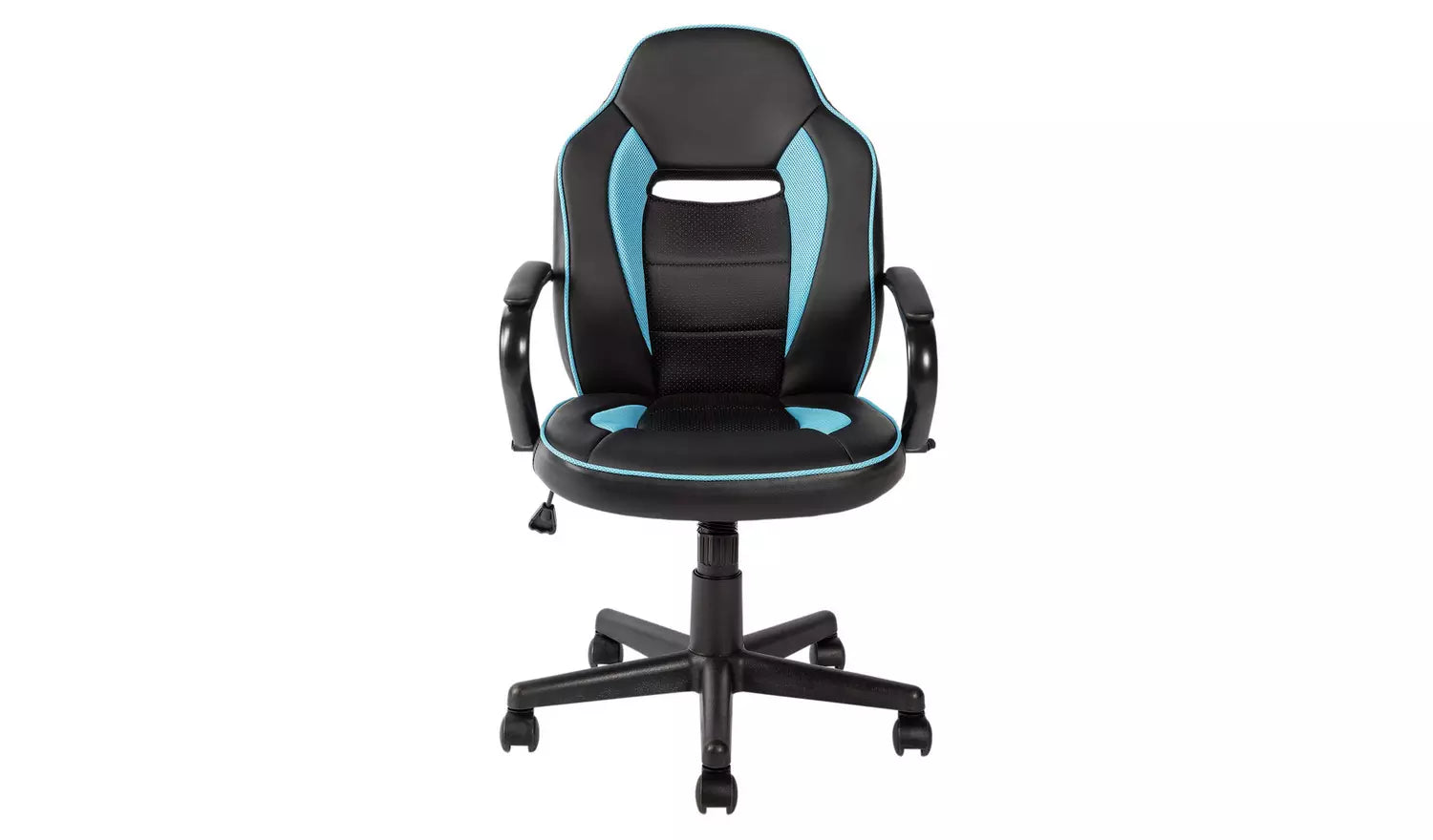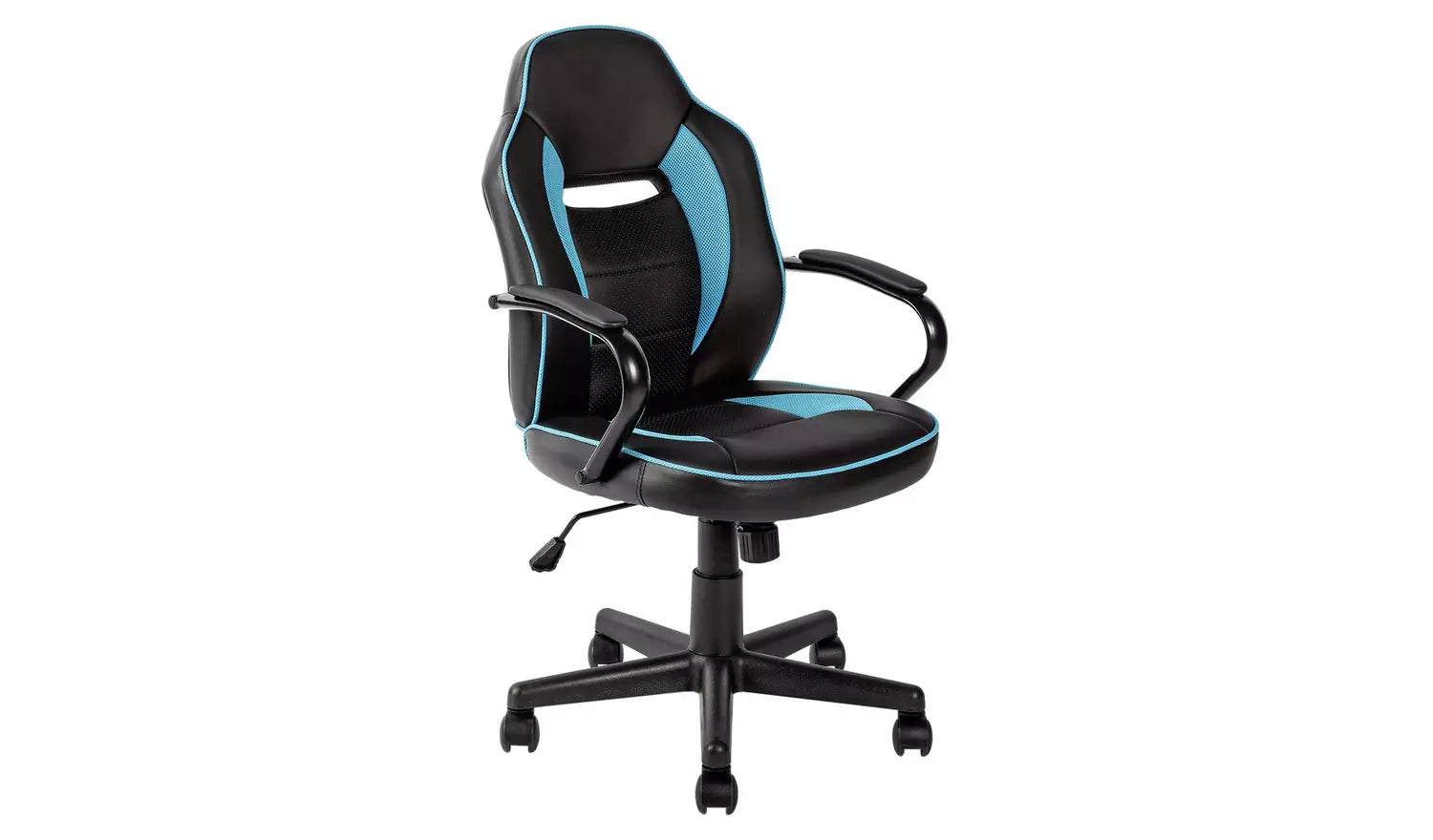 New - Argos Home Faux Leather Mid Back Gaming Chair - Blue & Black